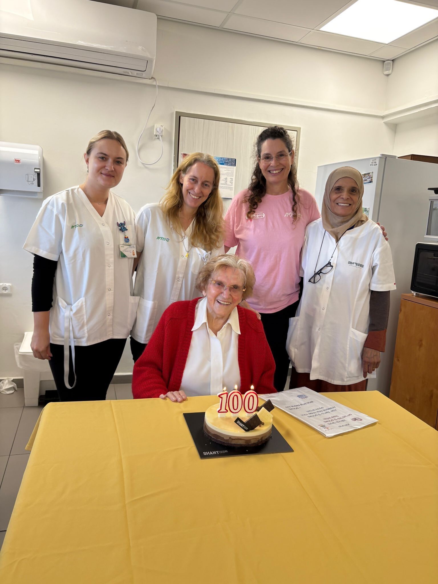 לאחר תור שגרתי במרפאה, הזמינה ד"ר רוטשילד את מרים והמטפל שלה לחדר הצוות, שם חיכתה לה הפתעה מרגשת. מרים התרגשה מאוד מהמחווה, הודתה לצוות על האכפתיות והחום, ושיתפה בתחושת השמחה על כך שזכתה להגיע לגיל מאה כשהיא מוקפת אנשים שמכירים ואוהבים אותה.